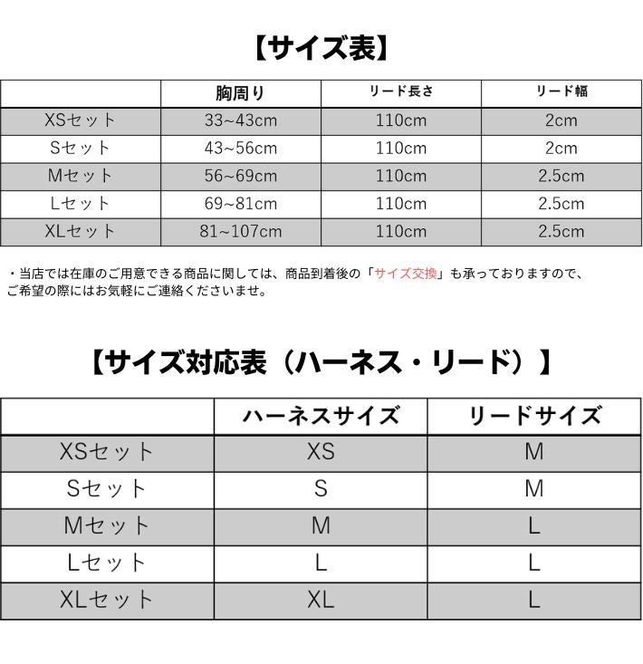 XLセット 胸周り 81~107cm リードの長さ 110cm リード幅 2.5cm