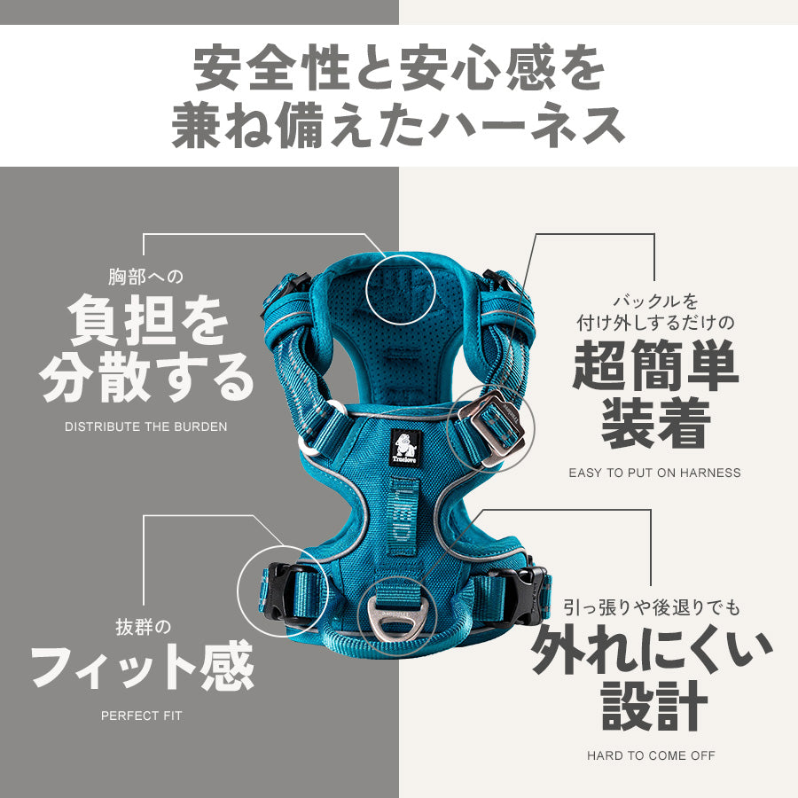 犬 ハーネス 頭から被る必要無しの超簡単装着 大型犬 犬用ハーネス 胴輪 パワーハーネス 散歩 中型犬 超大型犬 引っ張り防止 反射 ハンドル付 裏地メッシュ ソフト おしゃれ かっこいい 中型犬 小型犬 送料無料